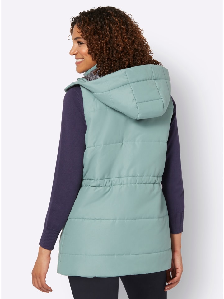 Этот универсальный и элегантный длинный жилет со стеганым узором станет прекрасным дополнением к вашему образу. Съемный капюшон и пояс регулируются с помощью шнурка, завязок и стопоров. Жилет имеет воротник-стойку и молнию по всей длине. Есть два практичных кармана на молнии и один внутренний карман на пуговице. Особенности: - Съемный регулируемый капюшон - Регулировка талии на шнурке - Практичные карманы на молнии - Внутренний карман на пуговице - Элегантный стеганый узор. Материал: 100% полиэстер