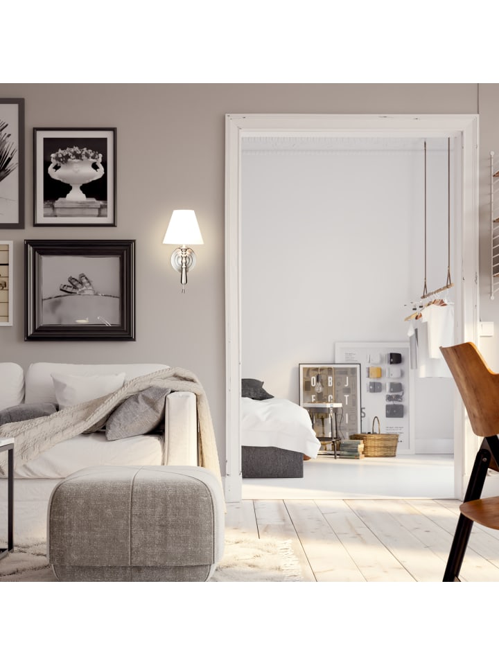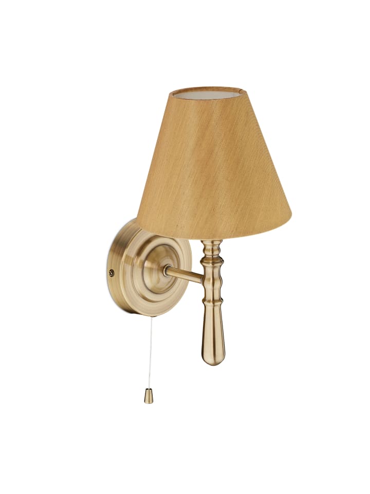 Этот стильный настенный светильник с тканевым абажуром станет настоящим украшением вашего дома. Светильник с абажуром из искусственного шелка излучает теплый, уютный свет и служит элегантным декоративным элементом. Он идеально подходит для освещения коридоров, гостиных, спален или лестниц. Выключатель с цепочкой обеспечивает удобное включение/выключение. Крепежные элементы для настенного монтажа входят в комплект.