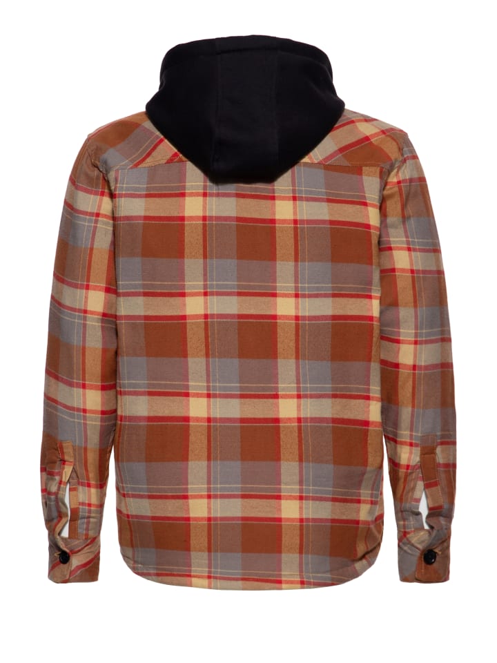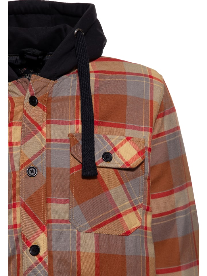 Эта толстовка с капюшоном King Kerosin привнесет в ваш стиль истинный дух отдыха на природе! Яркий клетчатый узор в теплых тонах, прочный капюшон и легкая стеганая подкладка делают ее идеальным дополнением к повседневным образам с изюминкой. Тонкая подкладка идеально подходит для переменчивой погоды или многослойной одежды. Два нагрудных кармана с клапанами на пуговицах, контрастный внутренний карман на кнопке и прочная планка на пуговицах обеспечивают функциональность и стиль. Закругленный низ и манжеты на пуговицах завершают образ - независимо от того, носите ли вы рубашку расстегнутой или застегнутой, она создает настоящий рабочий стиль.