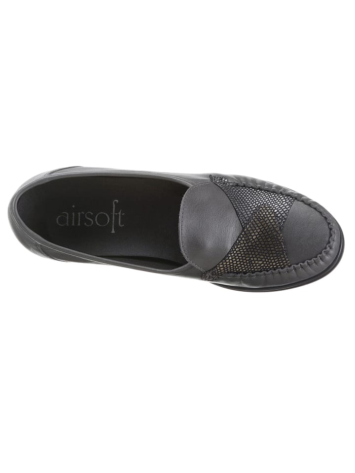 Удобные мокасины от Airsoft из натуральной кожи. Подкладка и съемная стелька изготовлены из влагоотводящей и дышащей микрофибры. Подошва TR с каблуком около 40 мм. Ширина H.