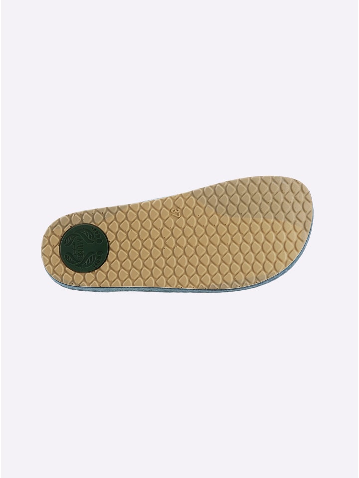Тапочки Mubb из теплой смеси войлока и шерсти. Подкладка из шерсти и кожи. Амортизация благодаря системе Anti-Shock. Нескользящая, гибкая полиуретановая подошва. Широкая посадка (H) для широкой стопы.