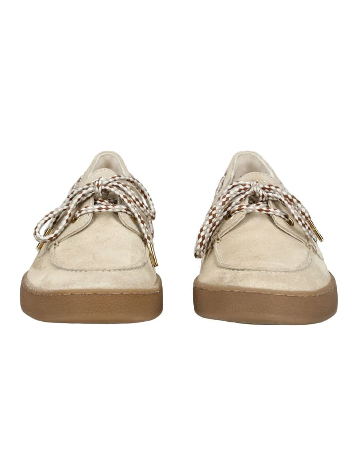 Эти классические лодочные туфли впечатляют своим спортивным, повседневным видом и морским шармом. Высококачественный материал верха обеспечивает комфорт и стильный внешний вид. Характерная шнуровка по верхнему краю подчеркивает типичный дизайн этой обуви для отдыха. Она особенно легкая и гибкая - идеально подходит для теплых дней и расслабляющего отдыха на суше или воде. Прекрасно сочетается с летними нарядами и повседневными образами. - Застежка: Шнуровка - Тип каблука: Плоский - Высота каблука: 3 см - Стелька: Кожа - Подкладка: Кожа - Подошва: Другой материал - Верх: Кожа