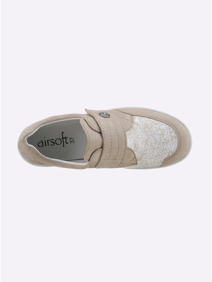 Ботинки Airsoft Comfort+ на липучках - настоящая находка для экономии места. Благодаря эластичной вставке в передней части стопы они подходят даже для чувствительной кожи! Верх выполнен из нубуковой кожи с элегантным цветочным принтом. Декоративный элемент на застежке добавляет стильный штрих. Подкладка выполнена из искусственной кожи со съемной кожаной стелькой. Мягкая амортизация обеспечивает комфорт при каждом шаге. Гибкая полиуретановая подошва имеет каблук высотой около 35 мм.