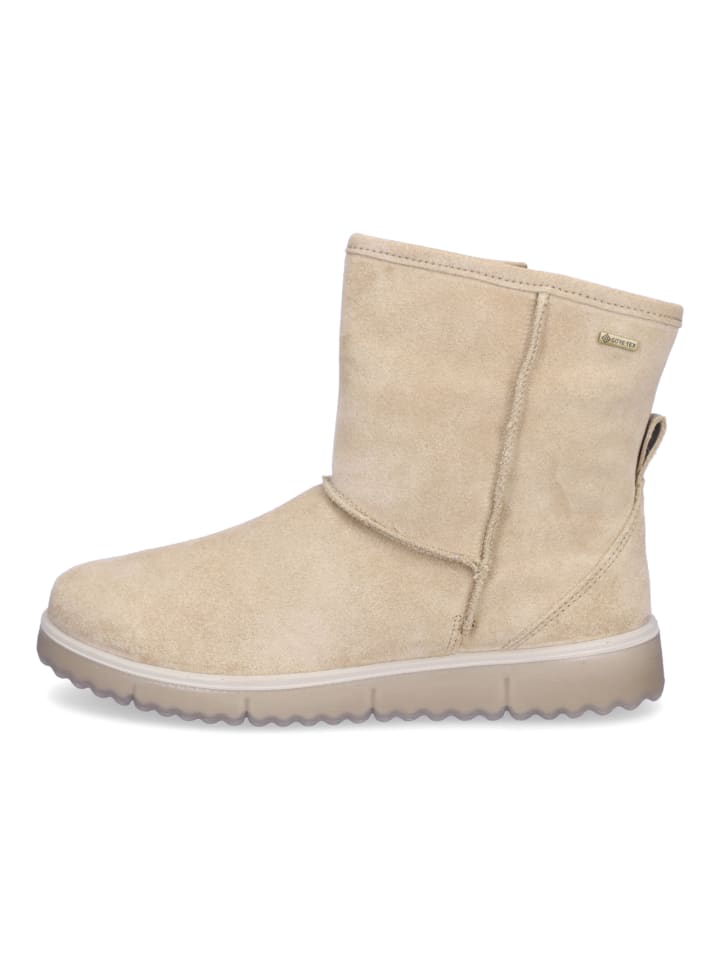 Женские сапоги Legero из бежевой замши с мембраной Gore-Tex, застежкой-молнией и текстильной подкладкой.