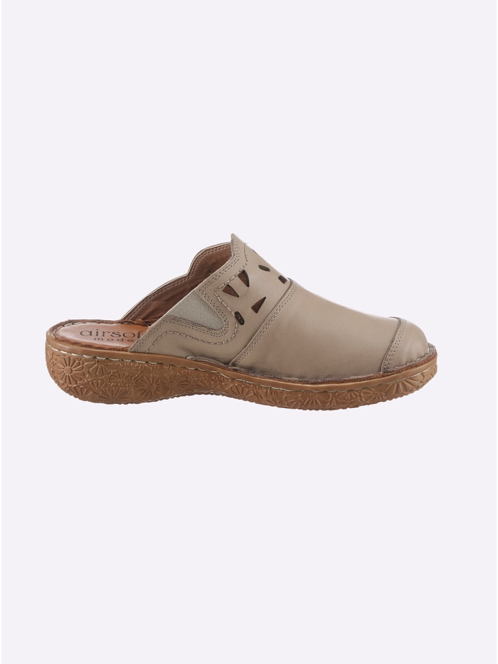 Просто наденьте их и чувствуйте себя комфортно! Летние сабо от airsoft modern+ с модной перфорацией и эластичными боковыми вставками. Верх из гладкой кожи. Подкладка из искусственной кожи. Кожаная стелька. Гибкая, мягкая подошва из полиуретана. Высота каблука около 30 мм. Стандартная ширина G.