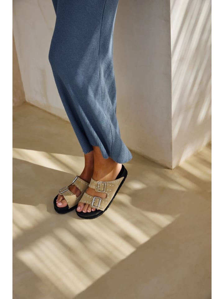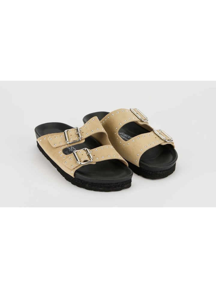 Эти открытые туфли из мягкой замши украшены модными заклепками
