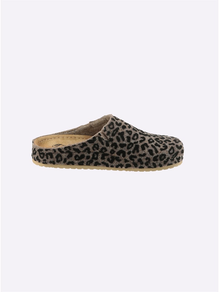 Эти тапочки Mubb невероятно красивы благодаря эффектному леопардовому принту с кожаной аппликацией. Эластичная боковая панель обеспечивает идеальную посадку. Верх выполнен из смеси шерсти и войлока. Они имеют теплую шерстяную подкладку и мягкую кожаную стельку из пеноматериала с эффектом памяти. Технология Anti-shock обеспечивает амортизацию. Гибкая нескользящая подошва из полиуретана имеет каблук высотой около 20 мм. Ширина В.