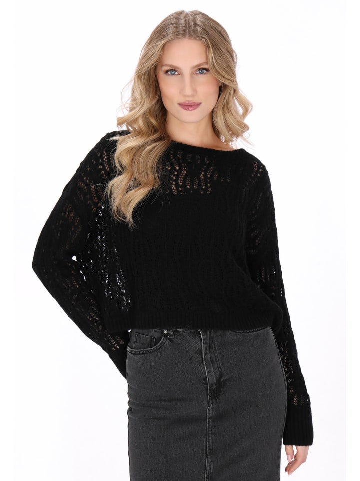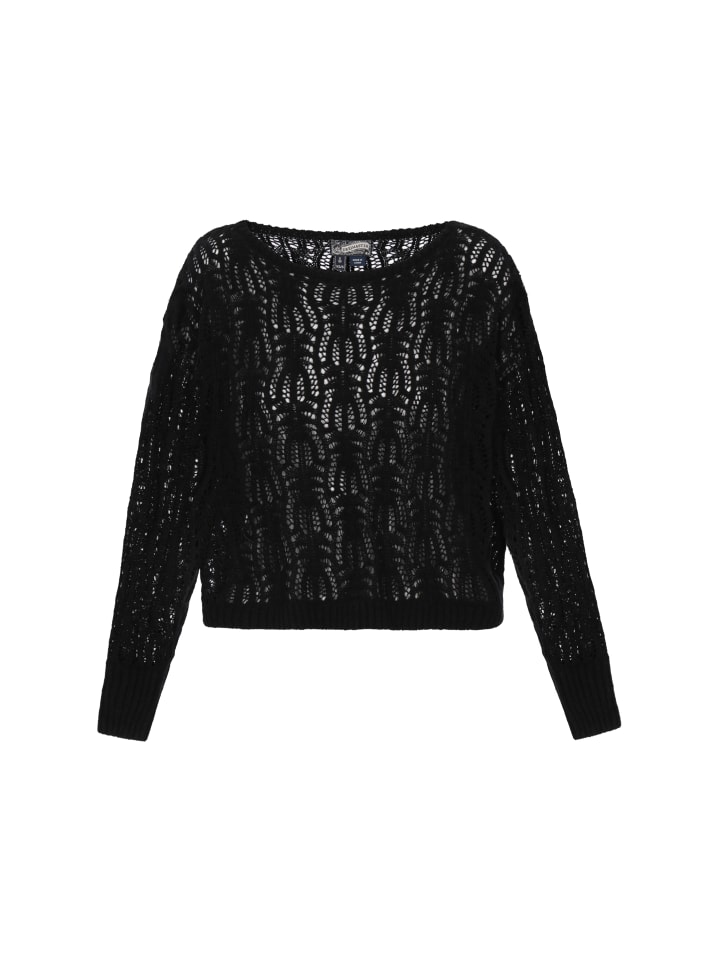 - Свитер свободного кроя с вырезом-лодочкой и длинными рукавами