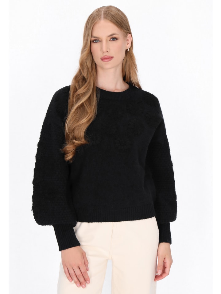 Свободный свитер из винтажной коллекции, изготовленный из мягкой трикотажной ткани с фактурным цветочным узором, придающим ему утонченную элегантность. Круглый вырез и длинные пышные рукава подчеркивают классический женственный силуэт. Изящная вышивка добавляет неповторимый шарм и художественный штрих. Этот свитер сочетает в себе комфорт, уют и вневременной стиль, идеально подходящий для повседневных, стильных образов в прохладные дни.