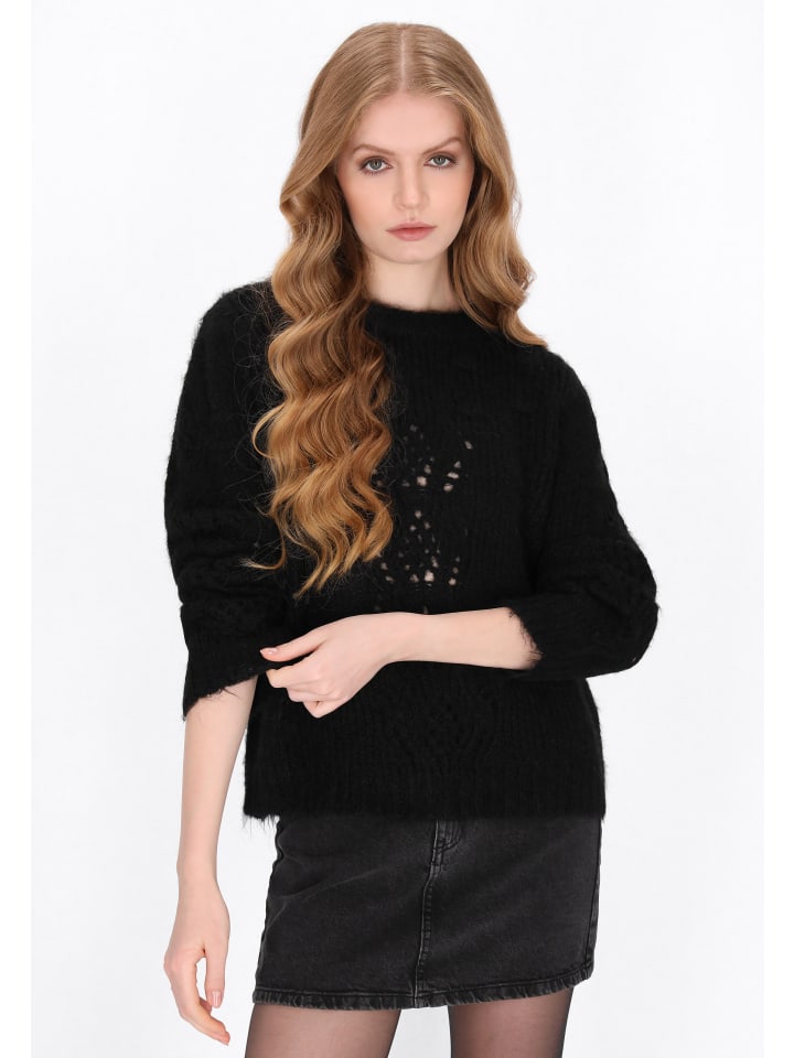 - Свитер стандартного кроя с круглым вырезом и длинными рукавами