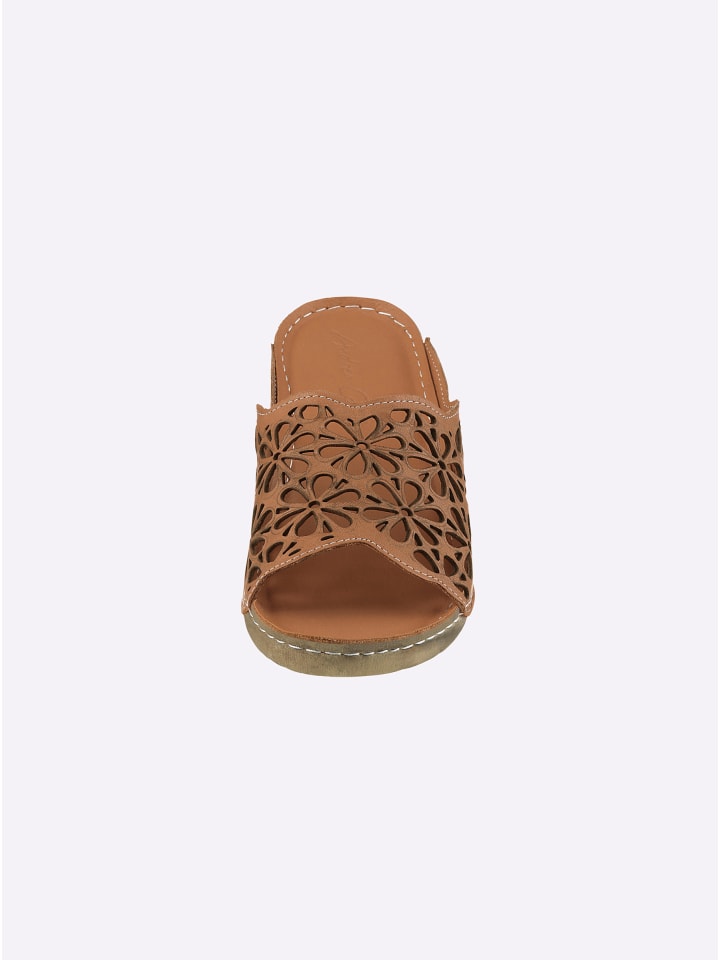 Мюли Andrea Conti из гладкой кожи передают легкость лета благодаря перфорированному цветочному узору. Внутри кожаная подкладка и очень мягкая подкладка. Гибкая, сверхлегкая подошва из полиуретана и танкетка высотой около 40 мм. Стандартная ширина G.