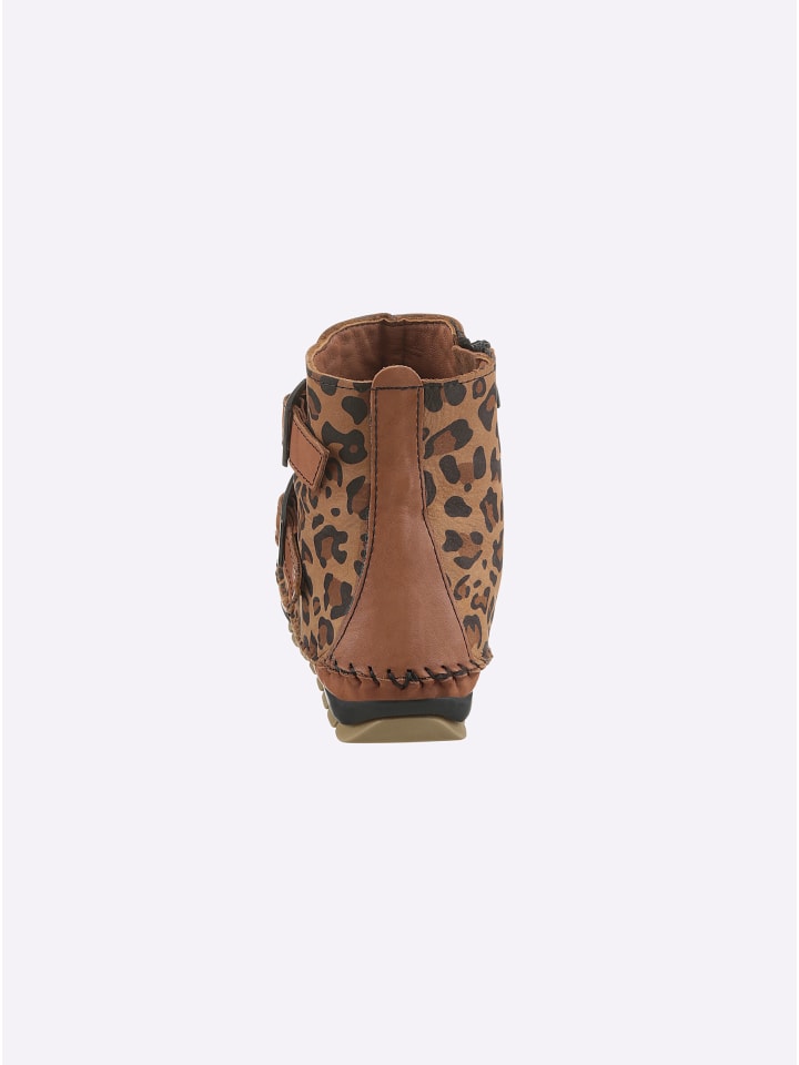Эти ботильоны Gemini с леопардовым принтом действительно привлекают внимание. Несмотря на смелый и яркий дизайн, гладкий кожаный верх невероятно мягкий и эластичный. Подкладка выполнена из текстиля и кожи. Ботильоны имеют боковую молнию и съемную стельку. Гибкая подошва из термопластичного эластомера имеет каблук высотой около 30 мм. Ширина G.