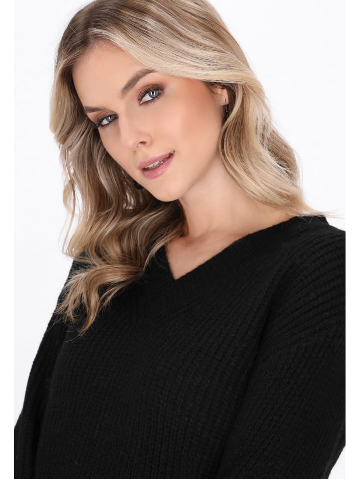 - Свитер классического кроя с V-образным вырезом и длинными рукавами