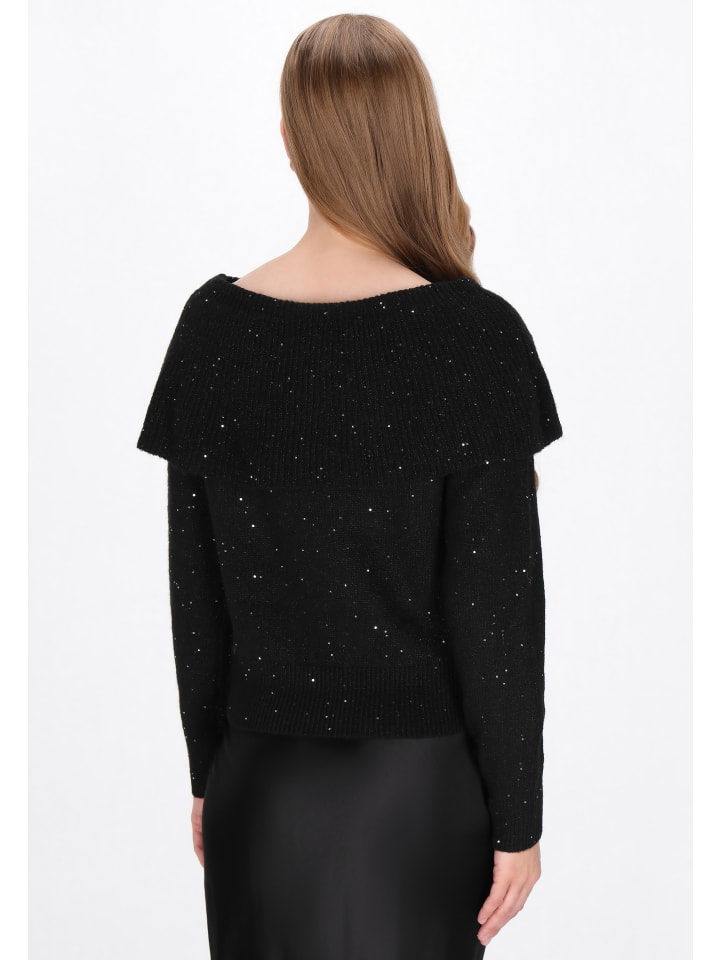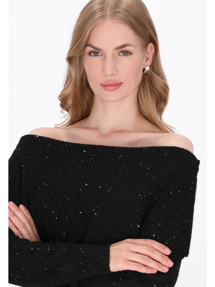 - Свитер стандартного кроя с открытыми плечами и длинными рукавами
