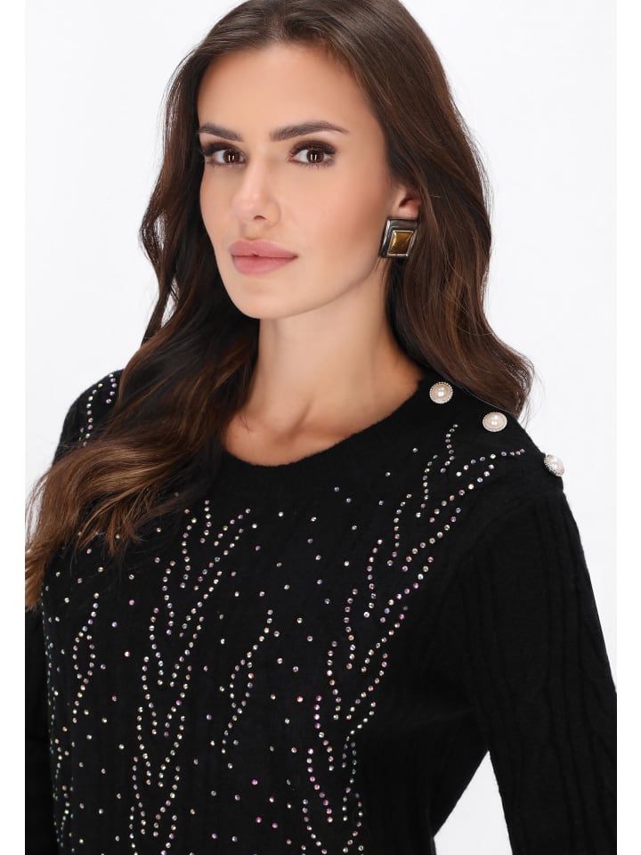 Стильный свитер из коллекции Faina, сочетающий элегантность и комфорт. Модель стандартного кроя с классическим круглым вырезом и длинными рукавами, изготовлена из мягкой ткани с едва заметным узором «косичка». Дополнительные кристаллы придают ему праздничный блеск, делая его идеальным для рождественских вечеринок и торжественных мероприятий. Свитер невероятно удобен, сочетая стиль и повседневную носку.