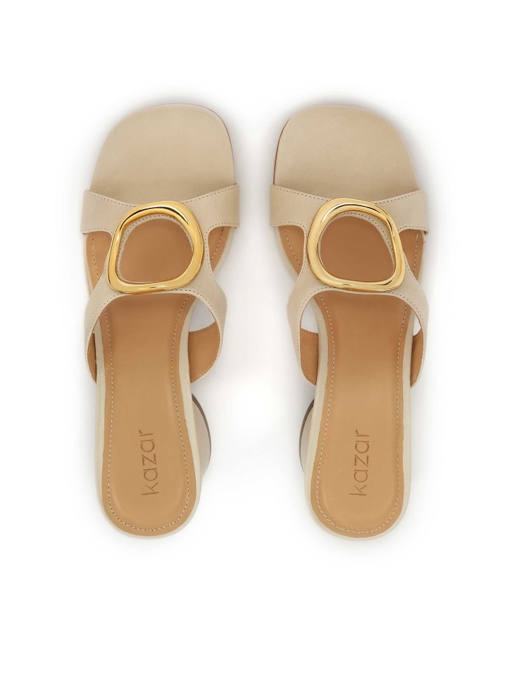 Эти кремовые мюли из натуральной кожи - исключительный выбор для ценителей элегантности и изысканности. Их дизайн сочетает классические элементы с современными акцентами, создавая обувь, которая будет выделяться в любом стиле. Верх украшен крупным металлическим орнаментом, который служит основным декоративным элементом. Это придает мюлям роскошный характер и уникальный стиль, привлекающий внимание и подчеркивающий внимание к деталям. Широкий закругленный каблук одновременно устойчив и эффектен, идеально сочетая эстетику и функциональность. Его тонкие линии и пропорции обеспечивают удобную посадку и деликатно и женственно подчеркивают силуэт. Эти мюли идеально дополняют сдержанные современные стили, добавляя нотку утонченного гламура. Подошва из туниковой кожи одновременно прочная и эстетически привлекательная. Подкладка из полуанилиновой овчины обеспечивает исключительный комфорт благодаря отличному влагопоглощению. Верх: Кожа; Подкладка: Другой материал; Стелька: Другой материал; Подошва: Другой материал