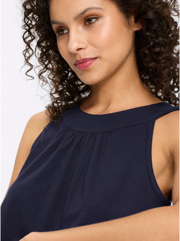 Рубашка. Идеальная базовая вещь из мягкого эластичного хлопка. Круглый вырез с небольшими сборками спереди. Сертифицировано GOTS.