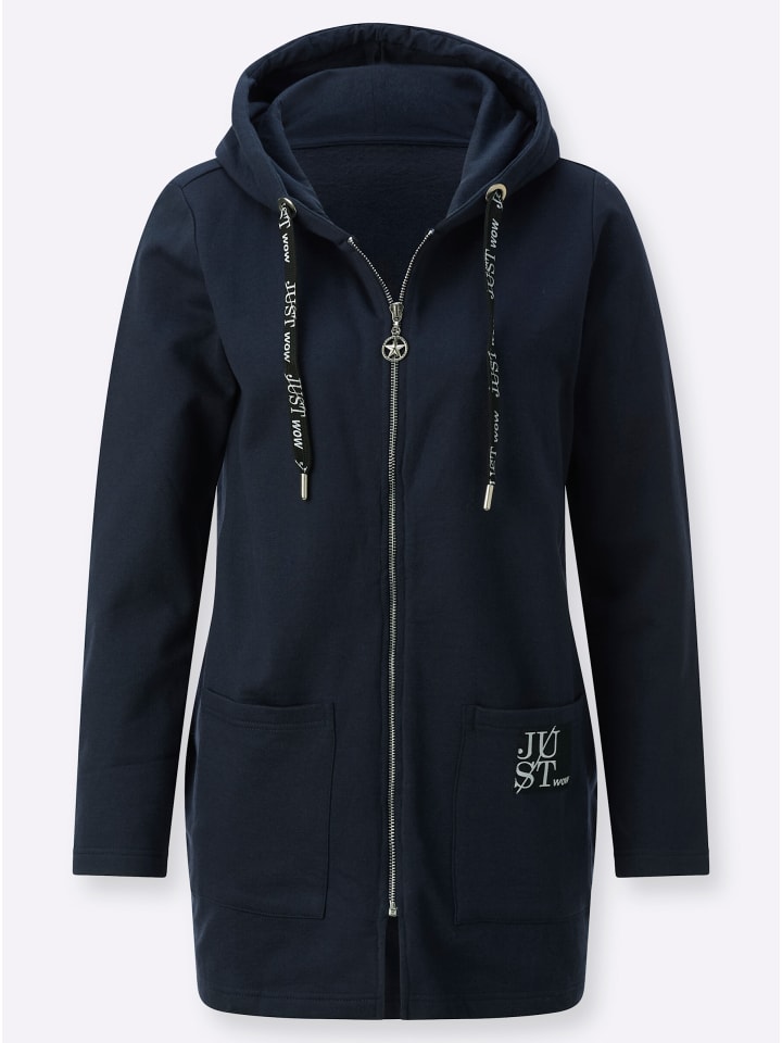 Невероятно красивая и дьявольски хороша! Эта толстовка-куртка действительно привлекает внимание благодаря аппликации в виде крыльев из сверкающих стразов на спине. Она имеет лестный удлиненный силуэт и мягкую, теплую внутреннюю подкладку. Капюшон имеет шнурок и завязку с надписью. Серебристая молния завершает образ. На одном из двух накладных карманов красуется нашивка «Just Wow». Изготовлена из переработанного хлопка.