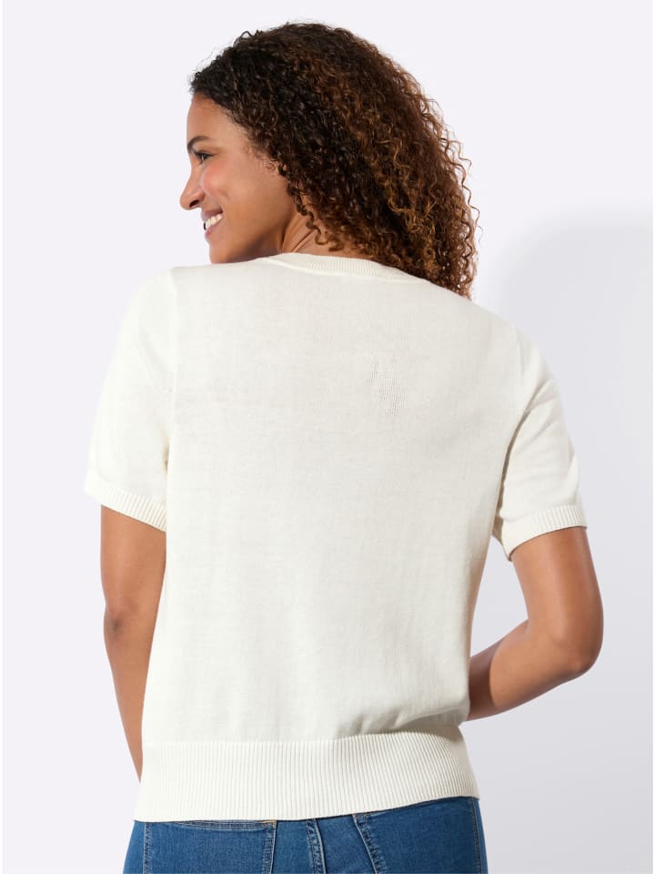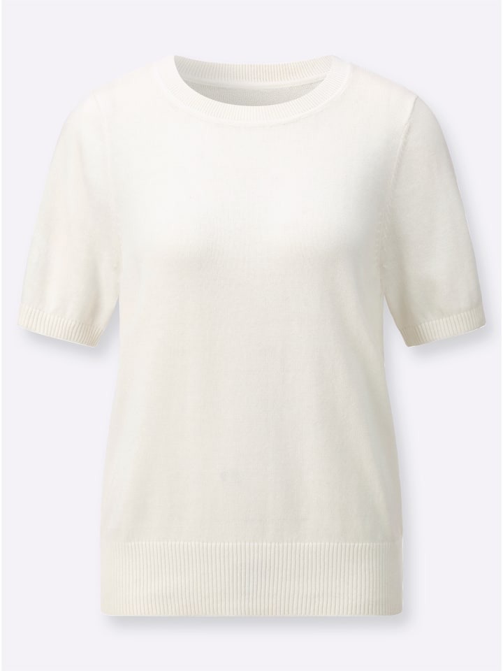 Очень легко сочетается с другой одеждой! Свитер с короткими рукавами и ребристой отделкой по краю горловины, коротким рукавам и низу. Сертифицирован GOTS.