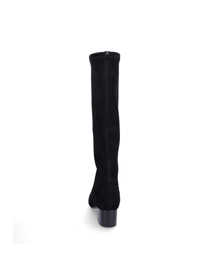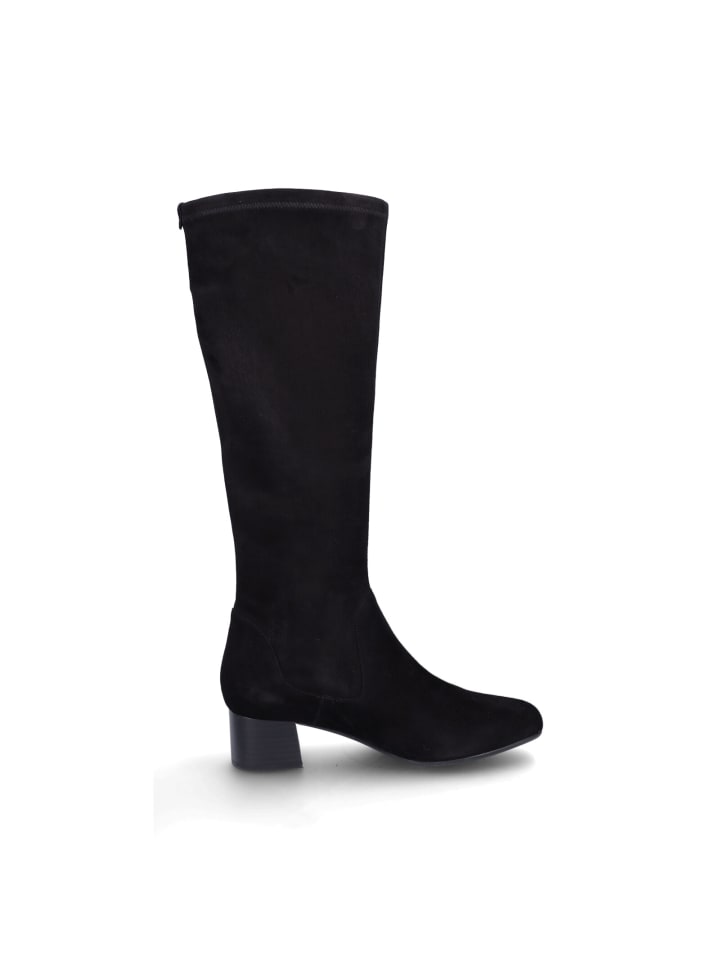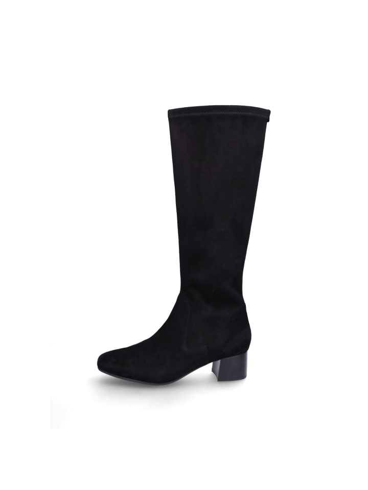 Женские ботильоны без шнурков от Peter Kaiser из черной замши с эластичным голенищем, кожаной стелькой и блочным каблуком высотой 4,8 см.