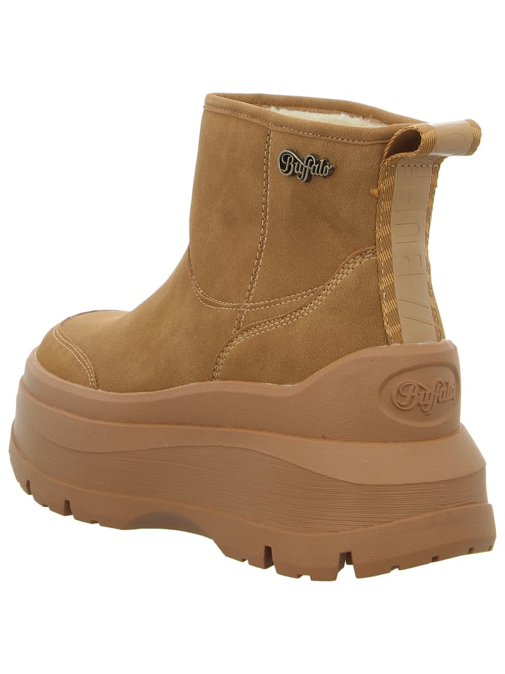 Теплые коричневые ботильоны Olympia Pull On Lo W от Buffalo - настоящая изюминка стиля. Массивная платформа с эффектным протектором придает ботинкам неповторимый вид. Исключительно удобная подкладка обеспечивает максимальный комфорт. Ощутите непревзойденный комфорт при ходьбе и привлекайте внимание окружающих в ботильонах Buffalo Olympia Pull On Lo W.