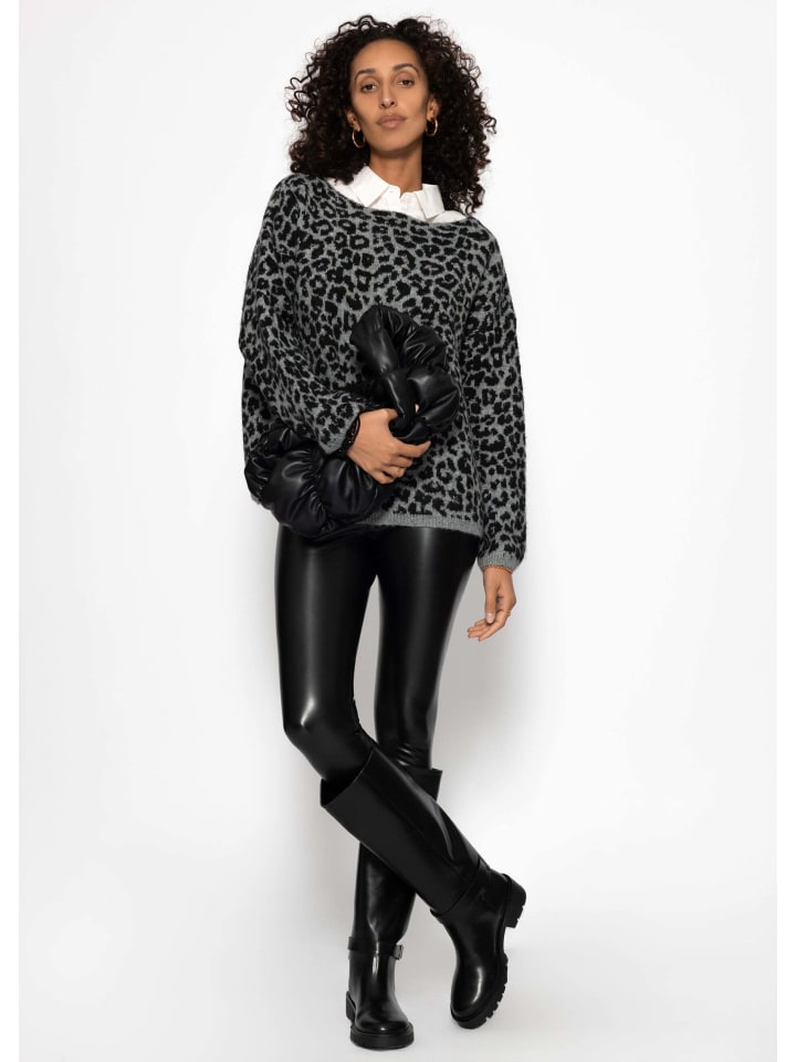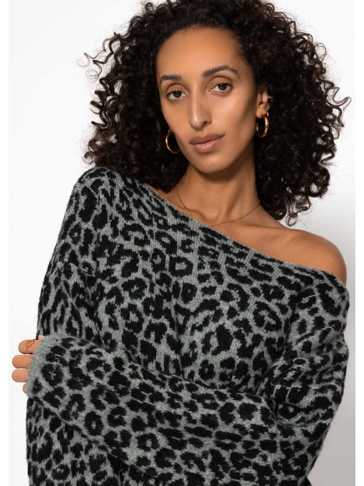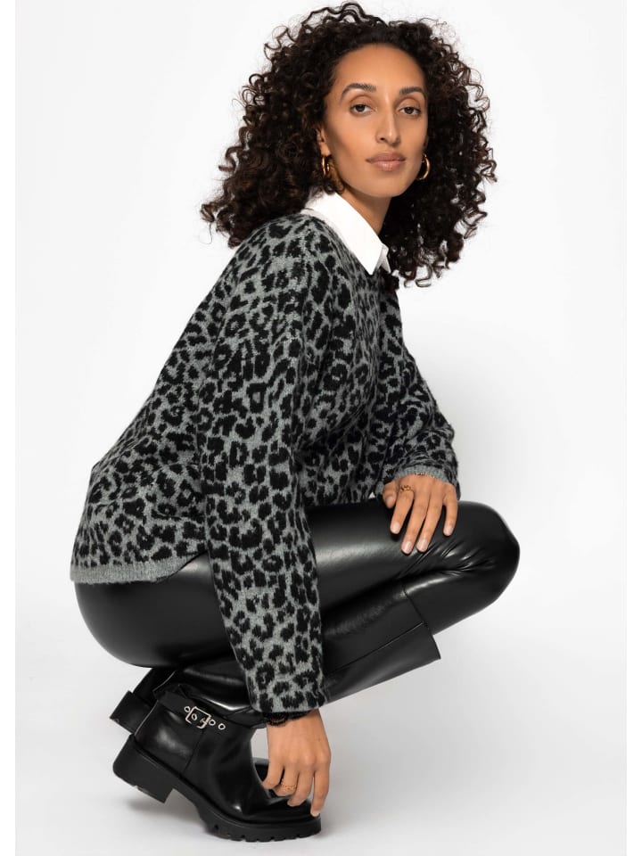 SASSYCLASSY Светло-серый свитер с леопардовым принтом