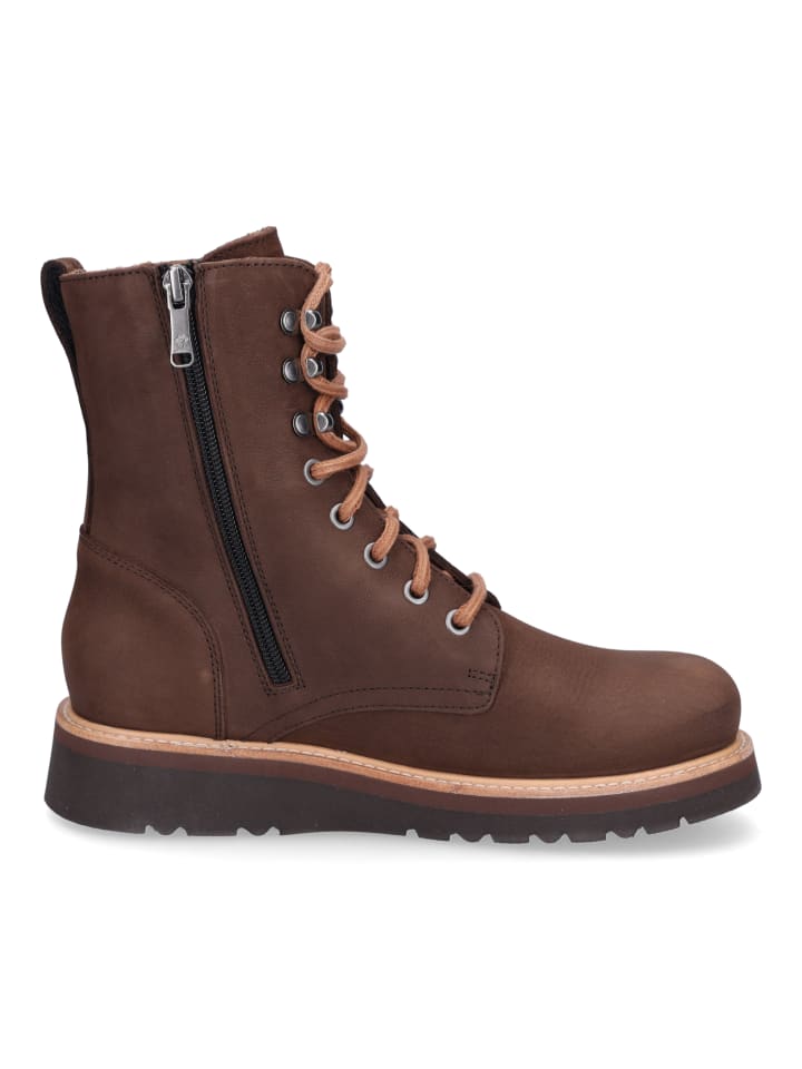 Женские ботильоны Panama Jack из коричневой нубуковой кожи со шнуровкой, молнией, съемной стелькой и подкладкой из телячьей кожи.