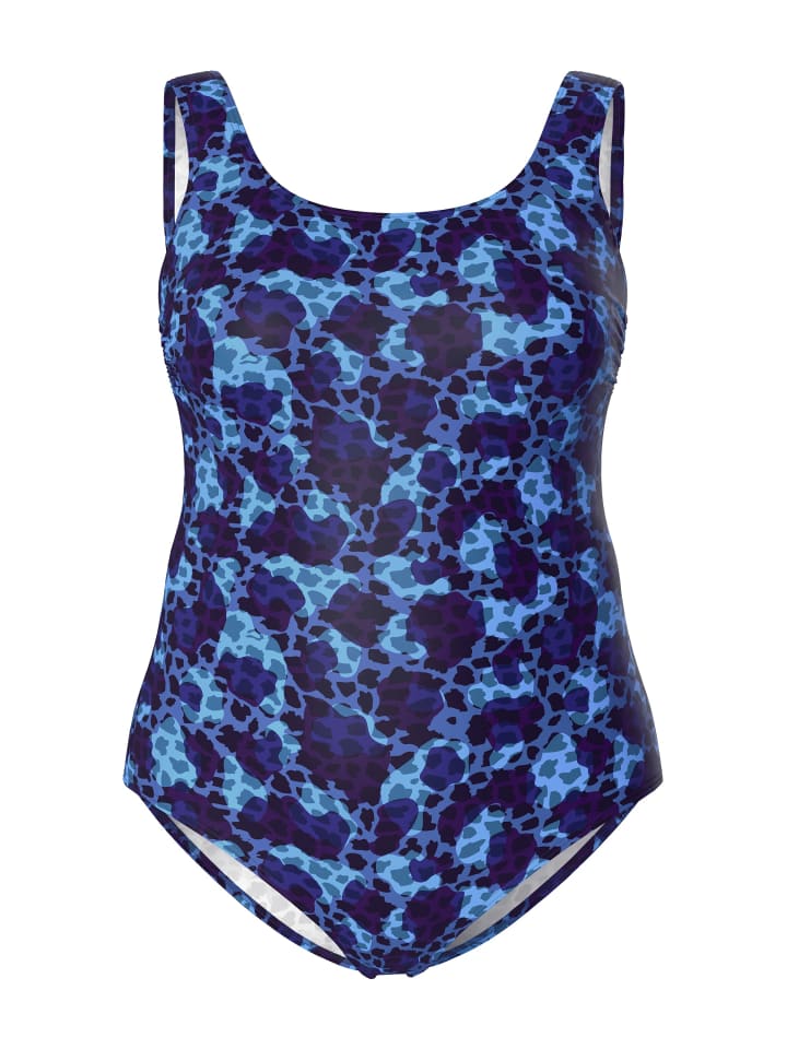 Купальник без мягких чашечек, с камуфляжным/леопардовым принтом. Поддерживающая лента под грудью, подкладка спереди.