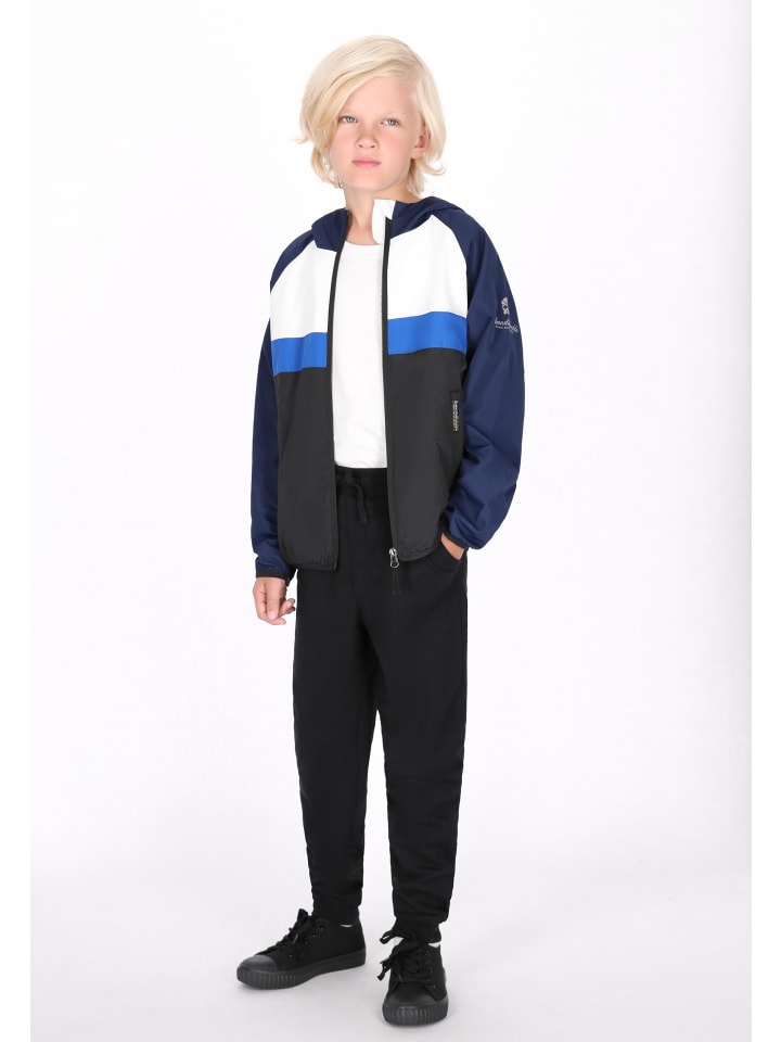 Эта куртка с капюшоном, созданная для комфорта и стиля, имеет застежку-молнию по всей длине и множество горизонтальных полос. Эластичные манжеты на длинных рукавах обеспечивают плотное прилегание, а логотип бренда на одном рукаве добавляет аутентичности. Капюшон регулируется шнурками, а внутри имеется сетчатая подкладка. Нижний карман на молнии обеспечивает удобное хранение вещей. Идеально подходит для повседневных или спортивных образов в прохладную погоду.