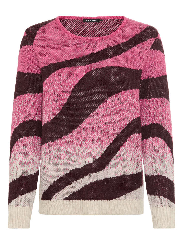 Стильный аксессуар для современных образов: этот свитер впечатляет ярким узором по всей поверхности в гармоничных цветах. Классический круглый вырез горловины придает дизайну вневременной вид, а тонкая вязка обеспечивает комфорт. Высококачественная смесь материалов с добавлением шерсти гарантирует тепло и сохранение формы - идеально подходит для стильных повседневных образов. Длина около 60 см.
