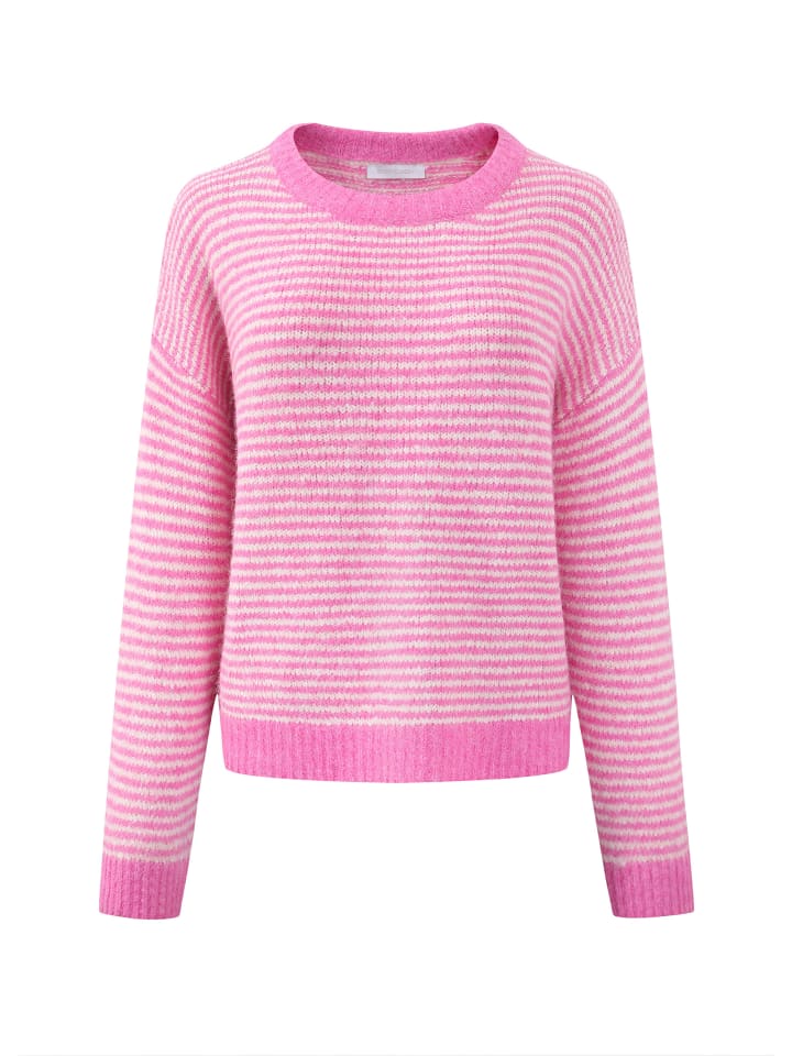 Этот полосатый свитер сочетает в себе модный повседневный стиль и эффектный дизайн. Его характерный полосатый узор и контрастные ребристые манжеты на круглом вырезе добавляют стильные акценты, которые придают любому образу свежесть. Свободный крой с прямым силуэтом и слегка приспущенными плечами обеспечивает комфорт и свободу движений. Мягкая, тонкая трикотажная ткань с меланжевым эффектом приятна на ощупь и особенно уютна благодаря своей плюшевой поверхности. В сочетании с джинсами, юбками или широкими брюками этот свитер добавит цвета и комфорта любому повседневному или городскому образу и может быть скомбинирован бесчисленным количеством способов.