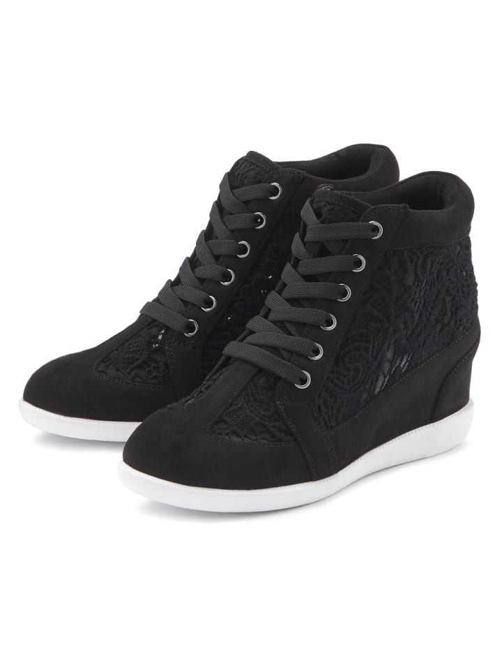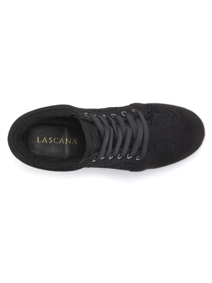 Элегантные кроссовки от Lascana с модной шнуровкой. Особенности: внутренний каблук-танкетка и мягкий задник для дополнительного комфорта. Легкая подошва. Изготовлены из текстиля.