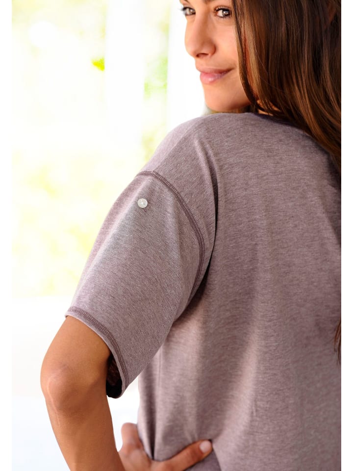 Коллекция ночной одежды в модном меланжевом стиле. Доступна в четырех красивых цветах. С контрастными деталями и декоративной строчкой. Милый короткий фасон. Круглый вырез горловины. Рукава с манжетами и перламутровыми пуговицами, которые можно закатать. Мягкая ткань, изготовленная из 60% хлопка и 40% полиэстера.