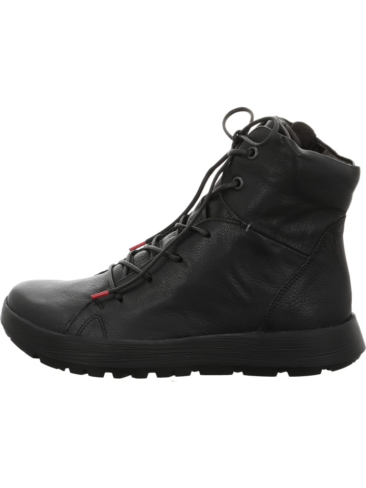 Название этих ботинок на щиколотку говорит само за себя: COMODA. Эти стильные ботинки Think! на шнуровке имеют контрастный верх и подкладку из кожи, дубленой без использования хрома. Благодаря этому материал особенно дышащий и комфортный для стопы. Легкая резиновая подошва обеспечивает теплоизоляцию и обладает противоскользящими свойствами. Благодаря цепкому протектору модель COMODA идеально подходит и для зимы. Ширина обуви: F 1/2. Подкладка: кожа. Верх: кожа. Подошва: другой материал.