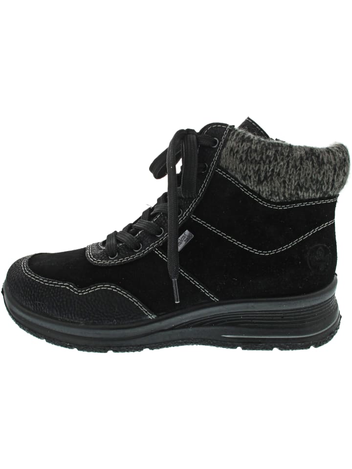 RiekerTEX: оптимальная защита от влажной и холодной погоды, воздухопроницаемость - высокий комфорт при ношении - больше места благодаря специальной посадке Rieker - гибкая, нескользящая подошва - практичная внутренняя молния - хорошо уплотненный воротник и язычок - водонепроницаемость