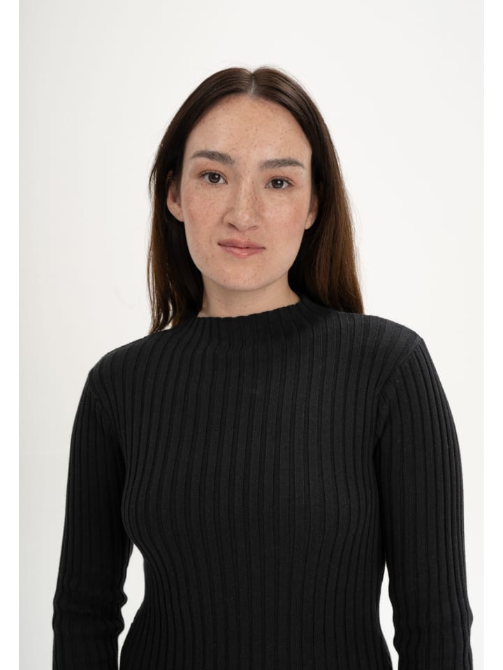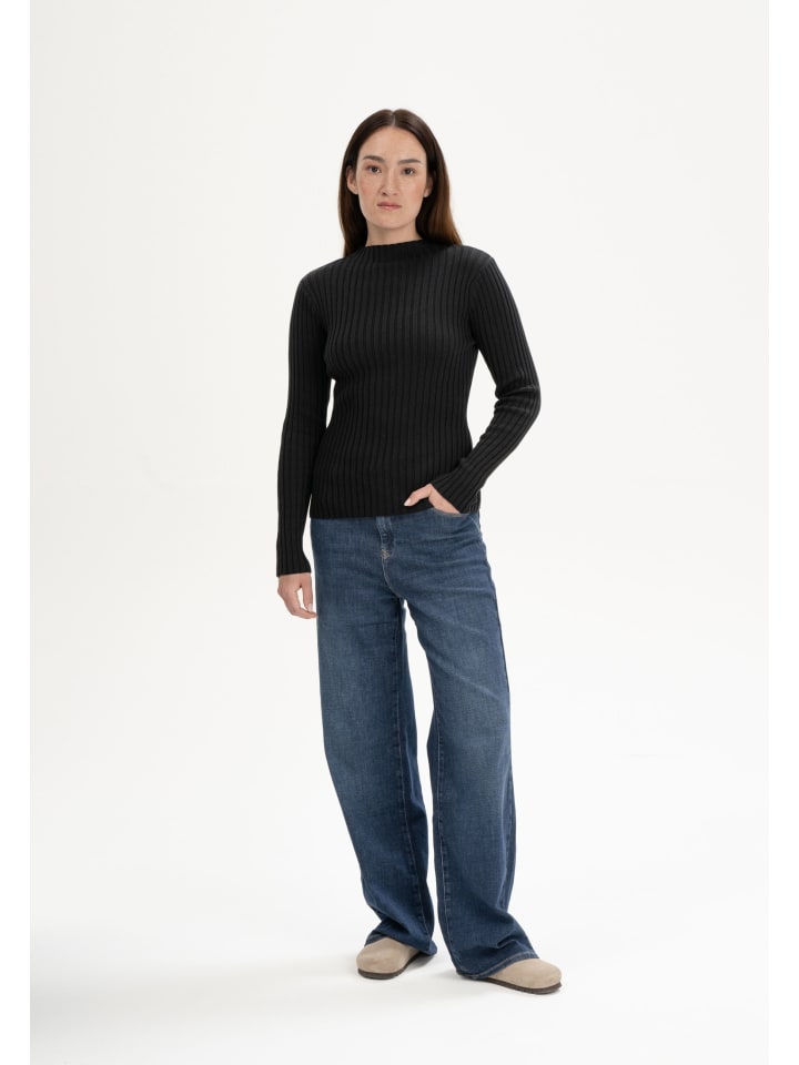 Этот легкий вязаный свитер впечатляет своей тонкой ребристой текстурой, облегающим силуэтом и коротким воротником-стойкой. Изготовленный из 100% органического хлопка, произведенного по принципам справедливой торговли, он не имеет ребристых манжет, что придает ему чистый и современный вид. Обратите внимание, что мы намеренно не добавляем эластан в нашу ребристую трикотажную ткань. Поэтому свитер со временем естественным образом растянется и приобретет более свободный крой.