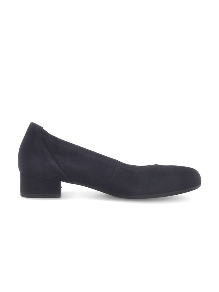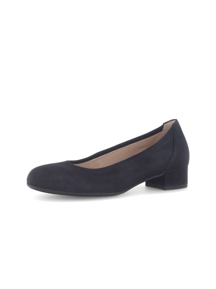 Будь то офис или вечернее мероприятие - элегантные туфли-лодочки от Gabor станут идеальным завершением любого образа. Верх синего цвета выполнен из фактурной замши, что делает эти туфли фаворитами среди стильных женщин. Средняя ширина (G) означает, что эти туфли идеально подходят для женщин со средней шириной стопы. Туфли из комфортной линии обеспечивают больший объем в области подушечки стопы и подъема, а также дополнительное пространство для пальцев, обеспечивая устойчивость. Модель имеет съемную стельку, которую можно легко заменить ортопедическими стельками.