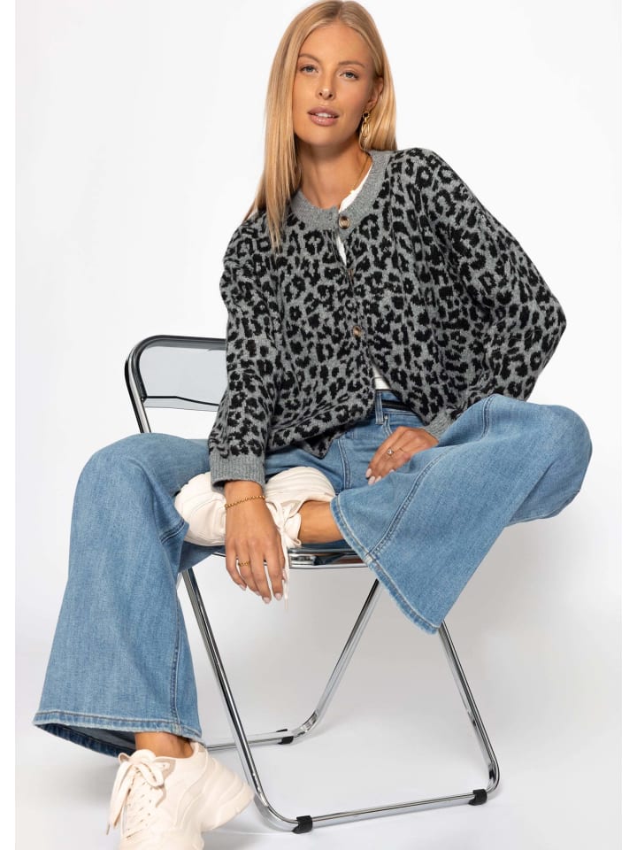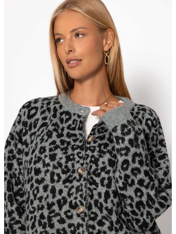 SASSYCLASSY Кардиган с леопардовым принтом серого цвета
