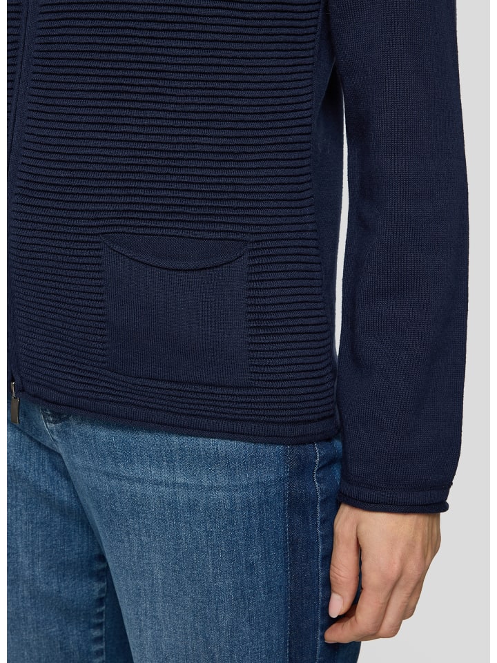 Эта куртка впечатляет изысканным сочетанием текстур: передняя часть имеет мелкую ребристую текстуру, а рукава и спинка - гладкие. Застежка-молния во всю длину с кольцевым язычком добавляет спортивный штрих. Два накладных кармана спереди обеспечивают место для мелких предметов. Мягкая хлопковая смесь приятна на ощупь и обеспечивает комфортную посадку. Особенности: текстурированная передняя панель, накладные карманы спереди, молния, воротник-стойка. - Текстурированная куртка-толстовка с небольшим воротником-стойкой - Смесь хлопка и полиакрила - Ребристая текстура - Приталенный крой - Рост модели 1,76 м, размер 38. Материал: - 60% хлопок - 40% полиакрил