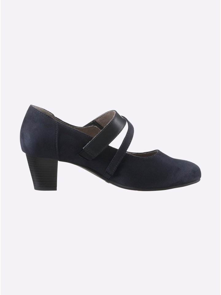 Туфли-лодочки Jana обеспечивают комфорт благодаря специальной ширине, разработанной для широкой стопы. Верх выполнен из искусственной кожи и текстиля. Подкладка также текстильная. Они оснащены застежкой-липучкой. Удобная, гибкая подошва из термопластичной резины имеет каблук высотой около 55 мм. Ширина В.