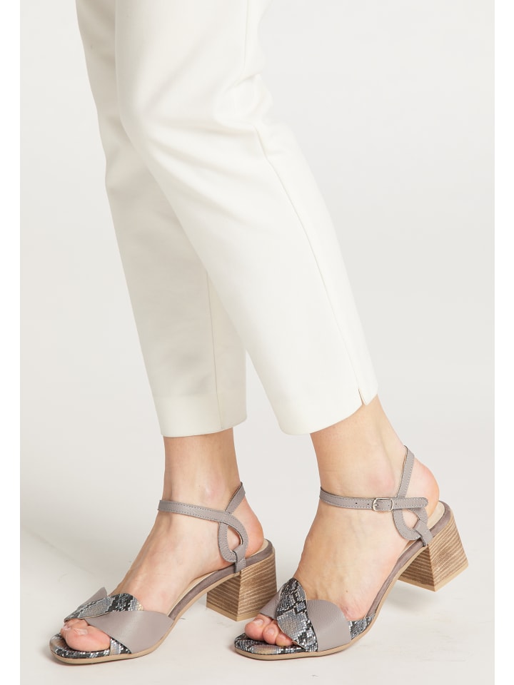 Женственные сандалии из высококачественной кожи должны быть в каждой коллекции обуви. Эта элегантная пара от Usha изготовлена из мягкой кожи, имеет изящную форму и оснащена ремешком на щиколотке с серебристой пряжкой. Широкий блочный каблук обеспечивает исключительный комфорт, а акценты в виде змеиного принта делают эти сандалии настоящим украшением. И для офиса, и для особого вечера эти сандалии идеально дополнят и завершат ваш образ.