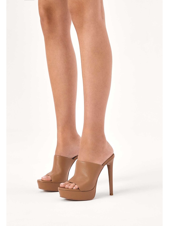 Мюли на высоком узком каблуке и толстой платформе визуально стройнят силуэт и добавляют несколько сантиметров роста. Они создают впечатление, будто ноги тянутся к небу. Широкий ремешок спереди обеспечивает идеальную поддержку и предотвращает соскальзывание стопы. Мюли на высоком каблуке - идеальная альтернатива сандалиям и туфлям-лодочкам, поскольку, как и они, они элегантны и чрезвычайно женственны, а также воздушны и удобны. Высококачественная натуральная кожа придает обуви безупречный и стильный вид. Подошва из туникообразной кожи отличается прочностью и эстетической привлекательностью. Подкладка из тонкой полуанилиновой овчины обеспечивает исключительный комфорт благодаря отличному влагопоглощению. Верх: Кожа; Подкладка: Другой материал; Стелька: Другой материал; Подошва: Другой материал