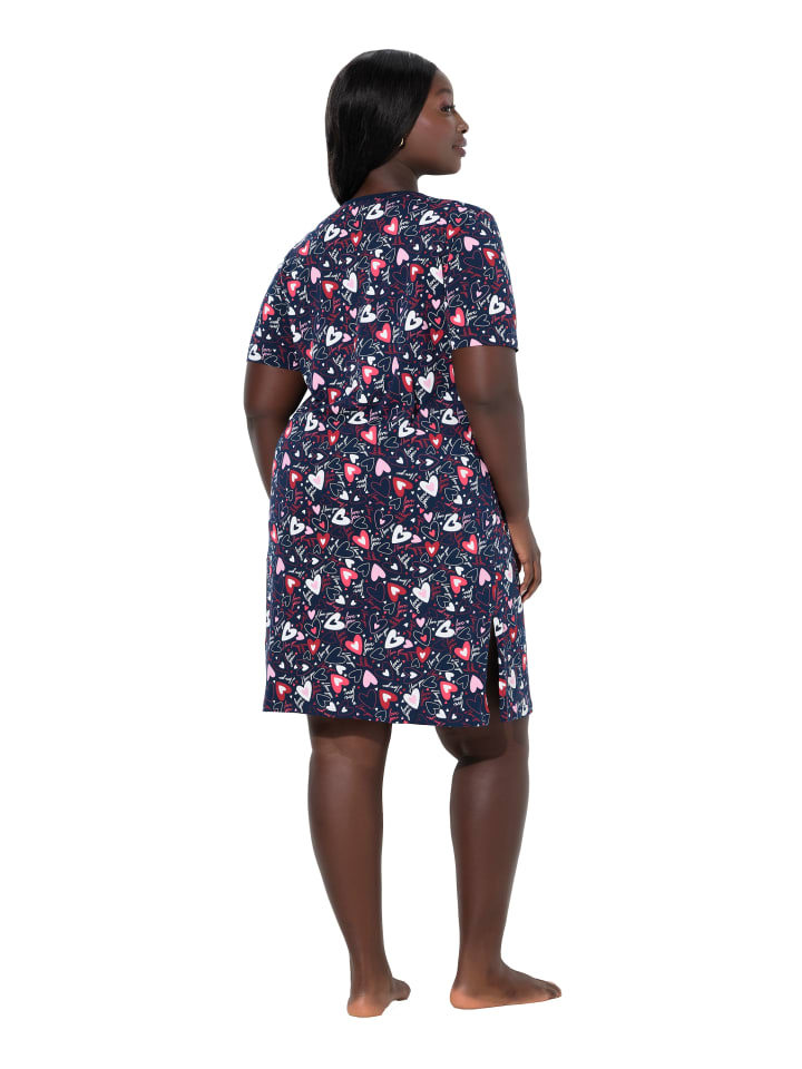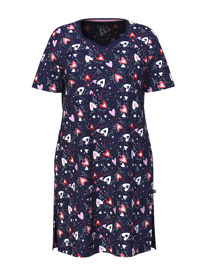 Футболка Love Story оверсайз, удобный крой, изготовлена из мягкого трикотажа с милым рисунком в виде сердечек. Вырез в форме сердца, короткие рукава, боковые разрезы для дополнительного комфорта. OEKO-TEX - Made in Green.