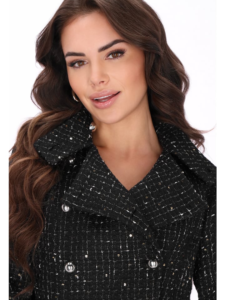 Этот уникальный короткий жакет из коллекции Faina сочетает в себе стиль и нотку гламура. Изготовленный из роскошной букле с фактурным узором, он привлекает внимание и добавляет изюминку любому образу. Воротник-стойка и длинные рукава подчеркивают современный силуэт, а двубортная застежка добавляет классической элегантности. Нежные пайетки украшают всю вещь, что делает ее идеальным выбором для праздничных и особых случаев.