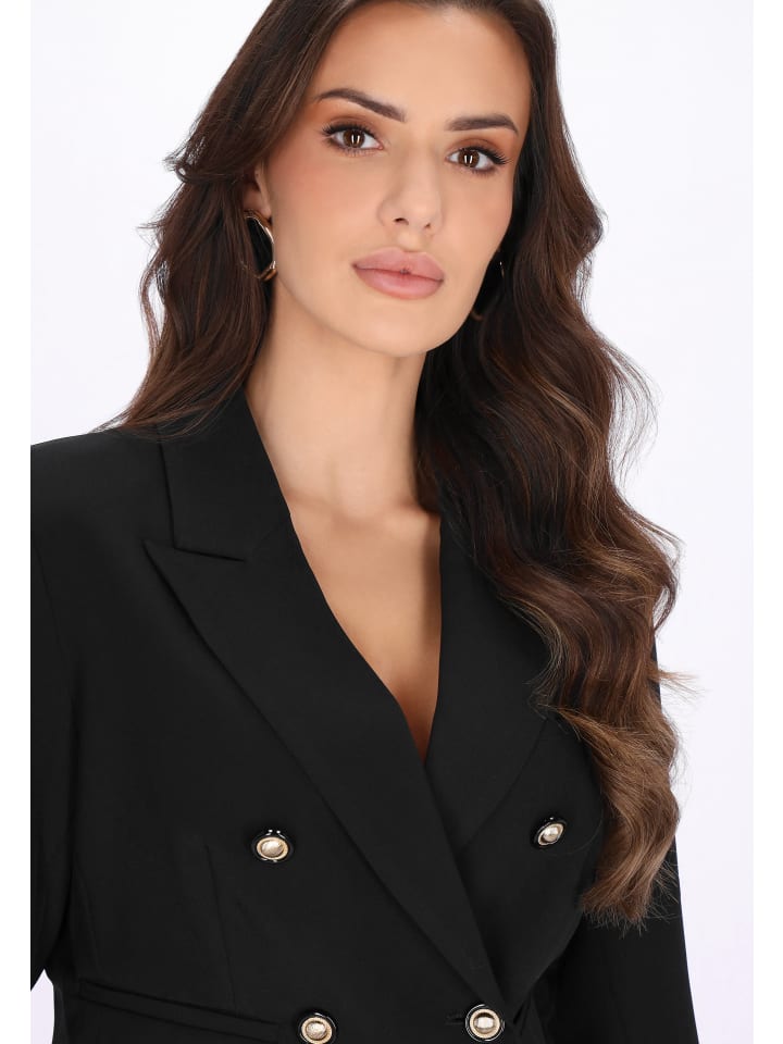 Дополните свой праздничный гардероб этим элегантным блейзером из праздничной коллекции. Выполненный в классическом крое с укороченным силуэтом, он имеет классический воротник с лацканами и длинные рукава, создавая изысканный, вневременной образ. Двубортная застежка украшена декоративными пуговицами, добавляющими утонченности к лаконичному, простому дизайну. Изготовленный из тканого материала, этот блейзер идеально подходит для особых случаев и торжеств, легко сочетая в себе изысканный стиль и современную элегантность.