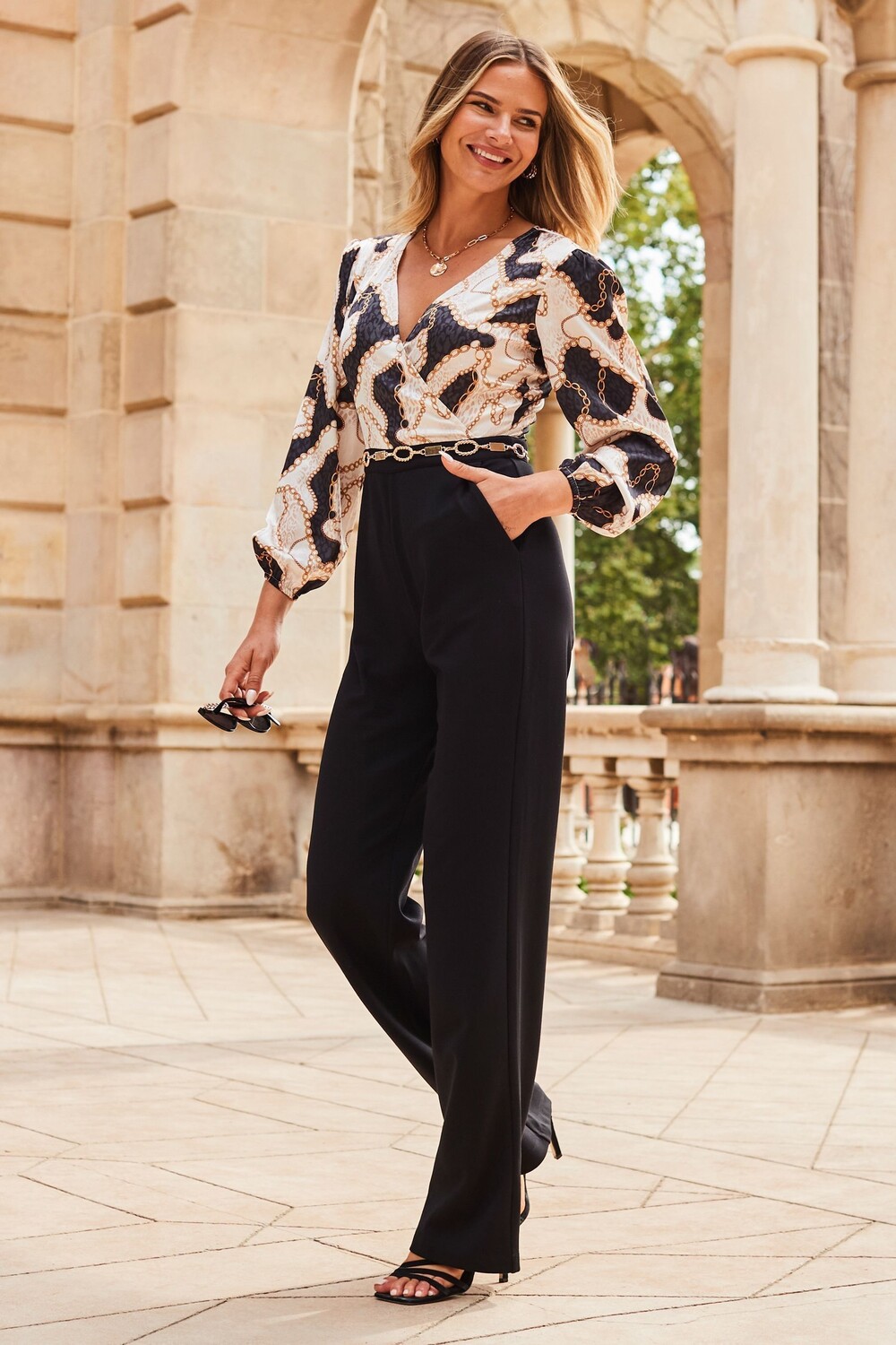 Длинный атласный комбинезон из ткани понте Sosandar, черный 8 576₽
