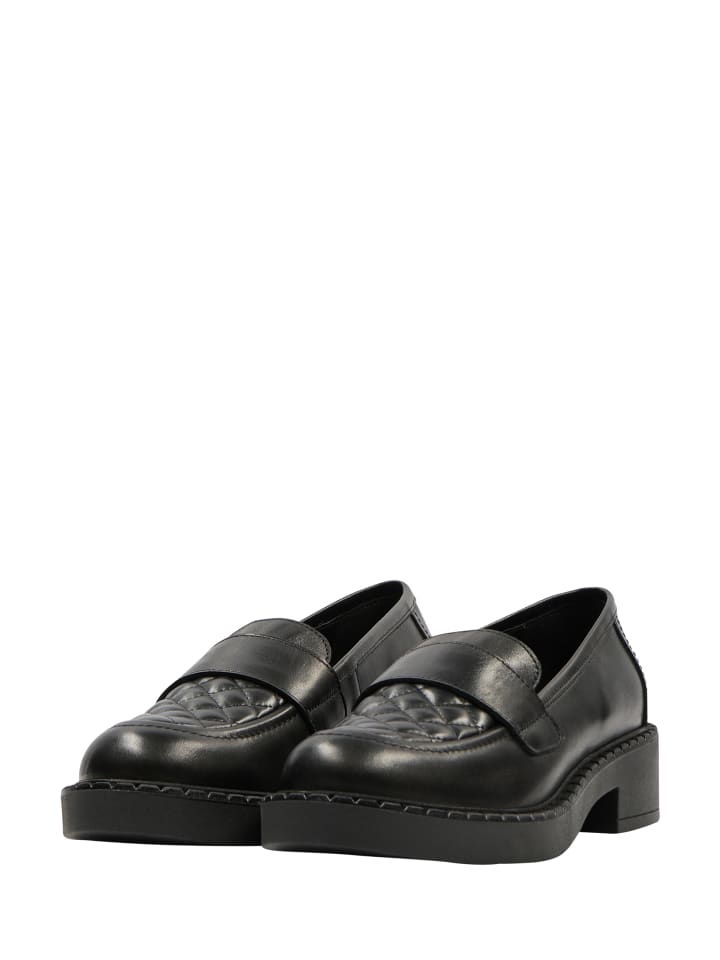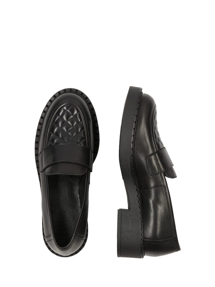 Эти черные лоферы от FELIPA отличаются эффектной платформенной резиновой подошвой и ремешком-«пенни», подчеркивающим классический дизайн. Изготовленные в Польше из мягкой кожи, они украшены ромбовидным узором на мыске. Носите их как с повседневной, так и с деловой одеждой.