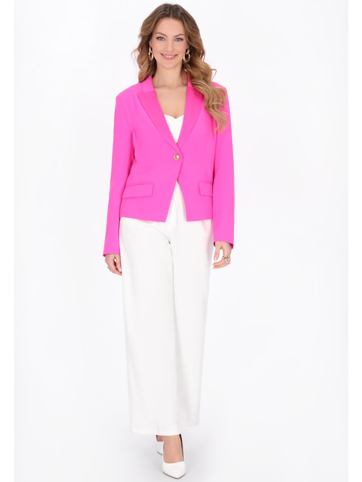 Стильный классический жакет, идеально подходящий для особых случаев. Воротник с лацканами и V-образный вырез подчеркивают шею и добавляют нотку шика. Длинные рукава и классическая однобортная застежка придают ему вневременной вид. Практичные накладные карманы добавляют функциональности. Изготовленный из высококачественной тканой ткани с гладким, равномерным рисунком, он идеально подходит для мероприятий и торжеств. Прекрасный выбор из праздничной коллекции.