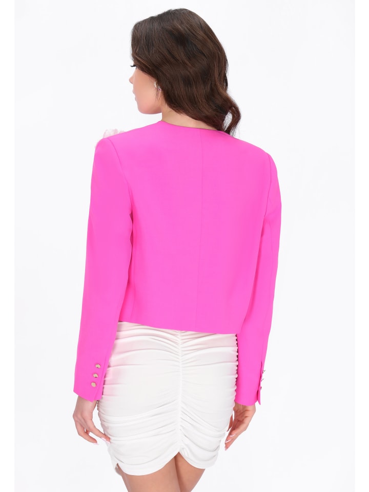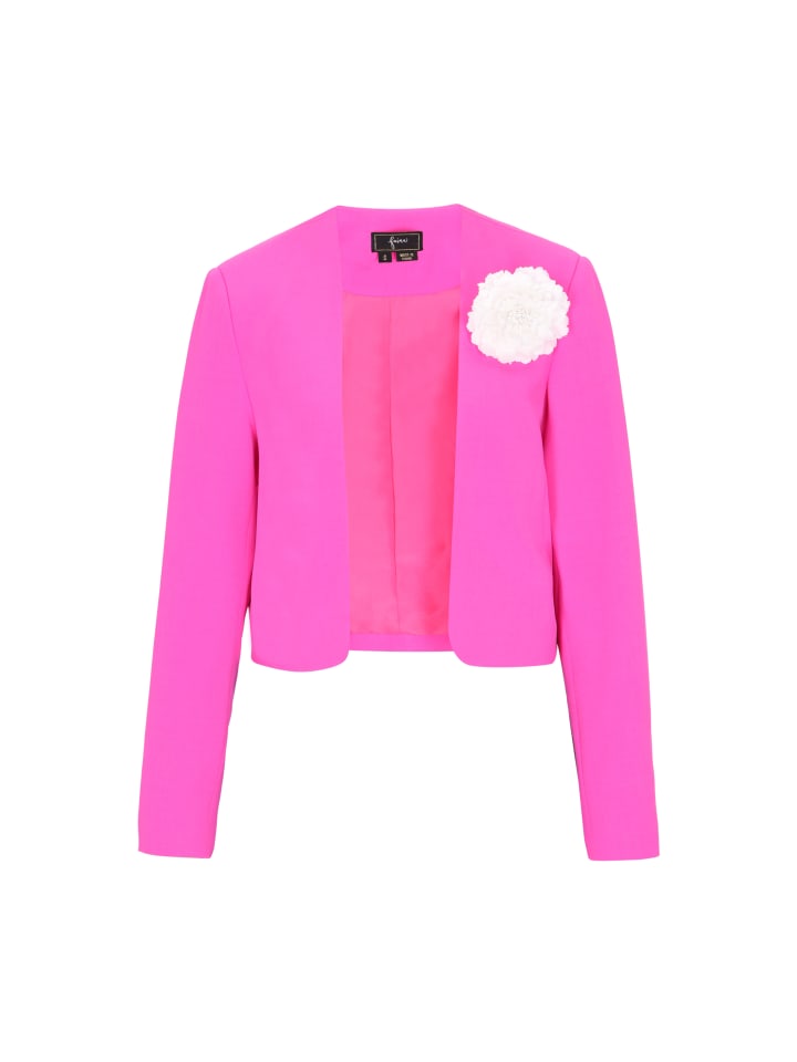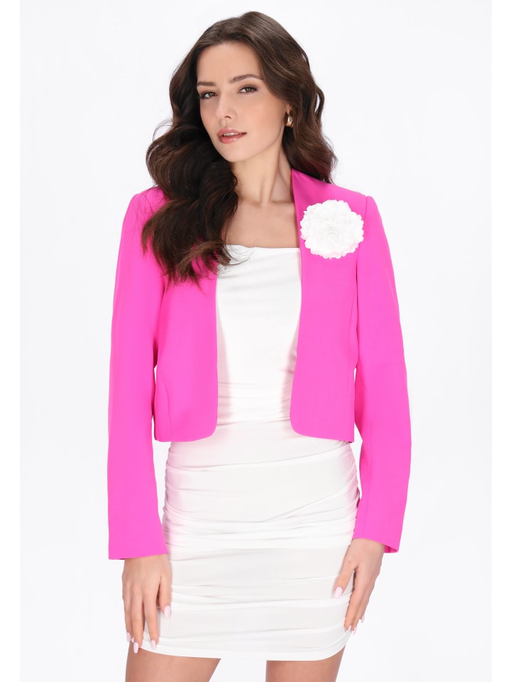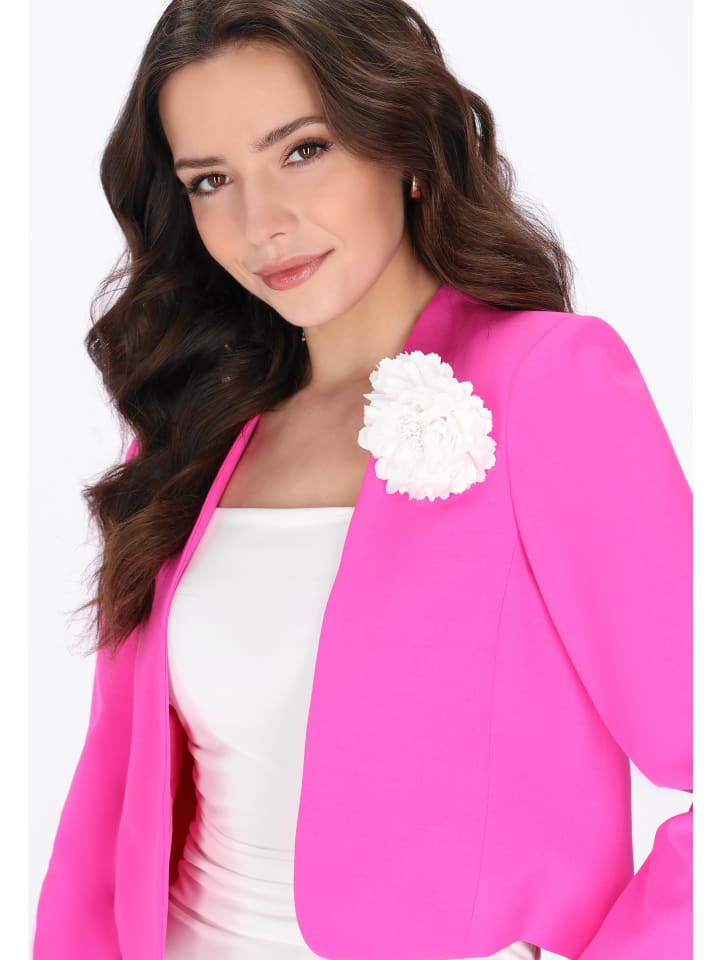 Классический укороченный жакет модной длины, идеально подходящий для особых случаев. Благодаря открытому переду и длинным рукавам, эта модель создает легкий и современный образ. Изготовленный из высококачественной ткани, он украшен нежным цветочным мотивом, придающим ему изысканность и женственность. Гладкий, однородный крой делает жакет идеальным дополнением к формальной одежде. Идеальный выбор для особых мероприятий и торжеств, это стильное дополнение к праздничной коллекции.