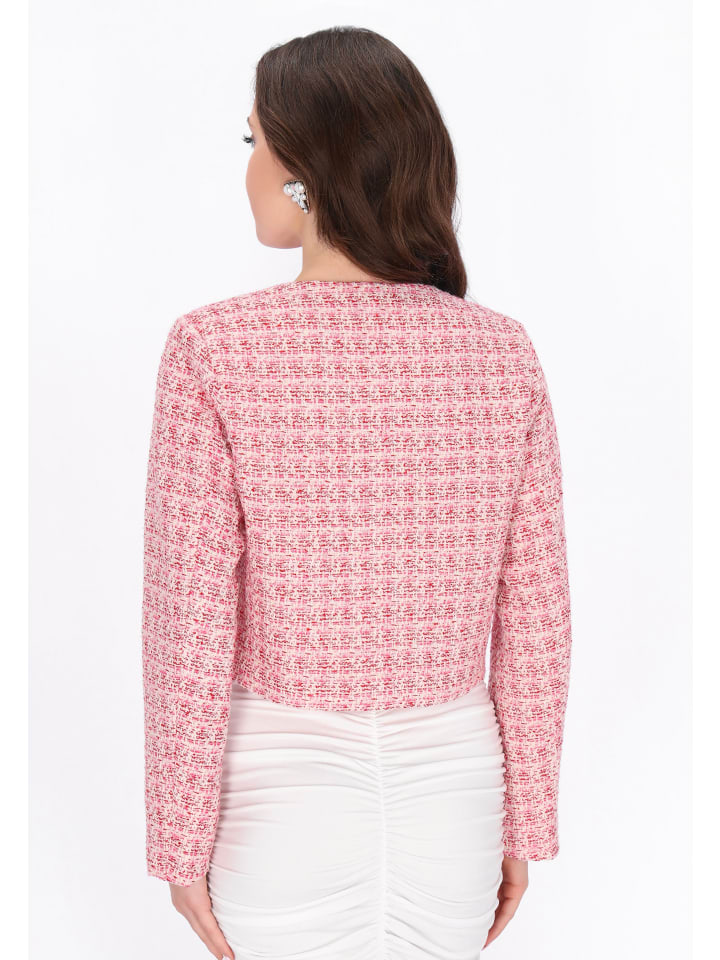- Укороченный блейзер классического кроя с круглым вырезом и длинными рукавами